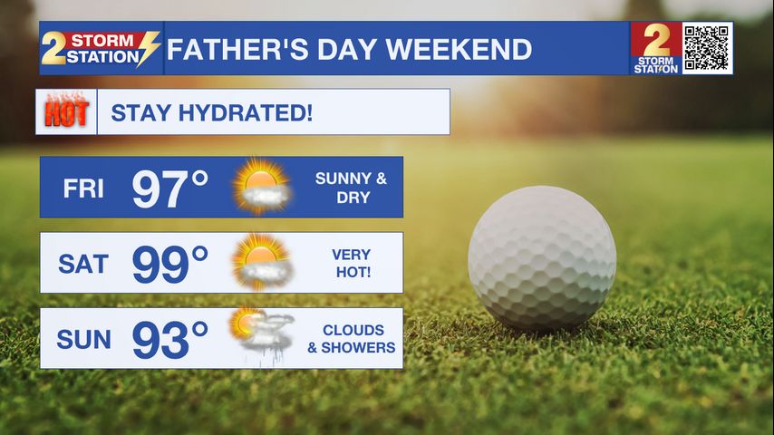 Father's Day weekend will start off with near record heat and end with an increased chance for showers and storms.