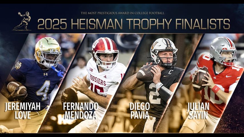 NEW YORK – The Heisman Trophy finalists were named on Monday night and include Notre Dame running back Jeremiyah Love, Indiana quarterback Fernando Mendoza, Vanderbilt quarterback Diego Pavia, and Ohio State quarterback Julian Sayin.