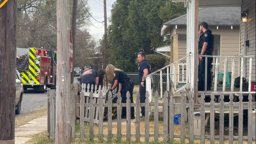 First responders carried the victim out of a home where the shooting happened before they were loaded into an ambulance.