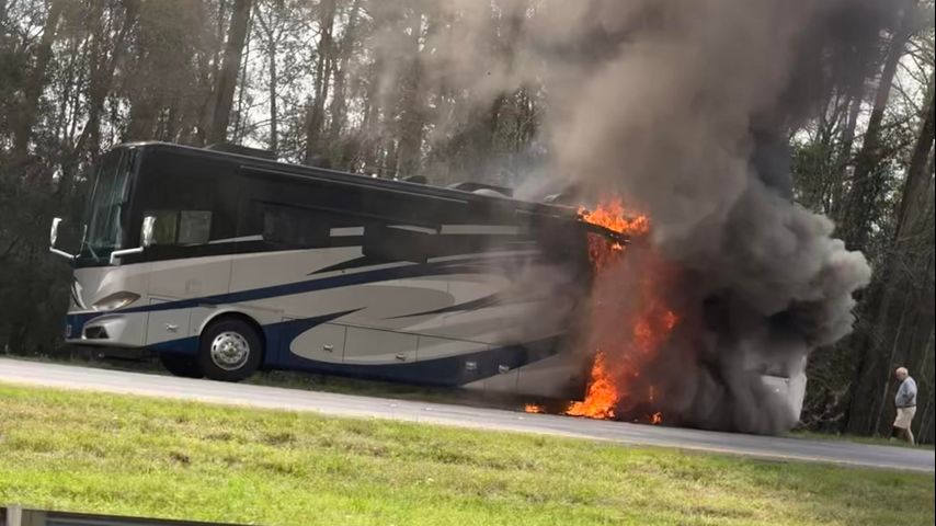 BATON ROUGE — An RV is currently on fire on I-12 eastbound, right before I-55.