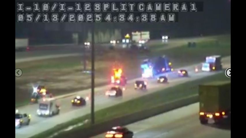 BATON ROUGE - The left lane is blocked just past the 10/12 split due to a disabled semi. Use caution.