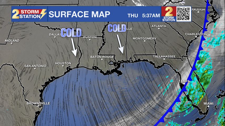 Snow Chance: Latest model data still indicates some low probabilities for some light snow or flurries this weekend. As very cold air continues spilling into the region, the upper-level energy responsible for the cold front could draw a touch of moisture inland from the Gulf. If there is enough moisture, some light rain or even snow flurries could fall Saturday night while most are sleeping. If any frozen precipitation does occur, no impacts are expected. Skies will clear quickly after dawn on Sunday with a bright, but chilly finish to the weekend.