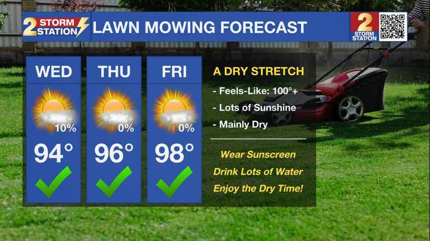 Tuesday PM Forecast: lawns less soggy as temperatures soar