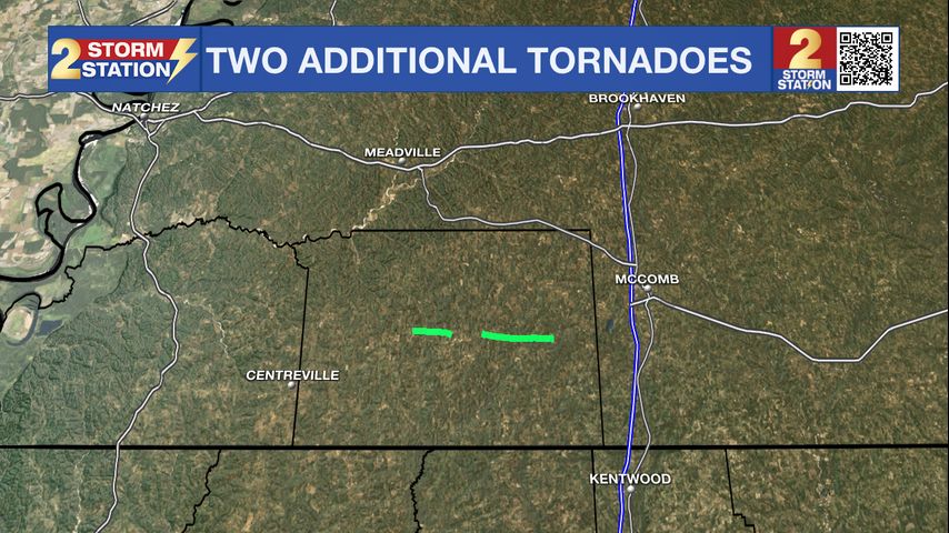 The first one started 4 miles WNW of Liberty, MS along Enterprise Road. This tornado then moved eastward towards Toler Lane, where it peaked in intensity. Here, a swath of at least 20 pine trees were snapped clean near the base. This tornado then weakened as it moved east