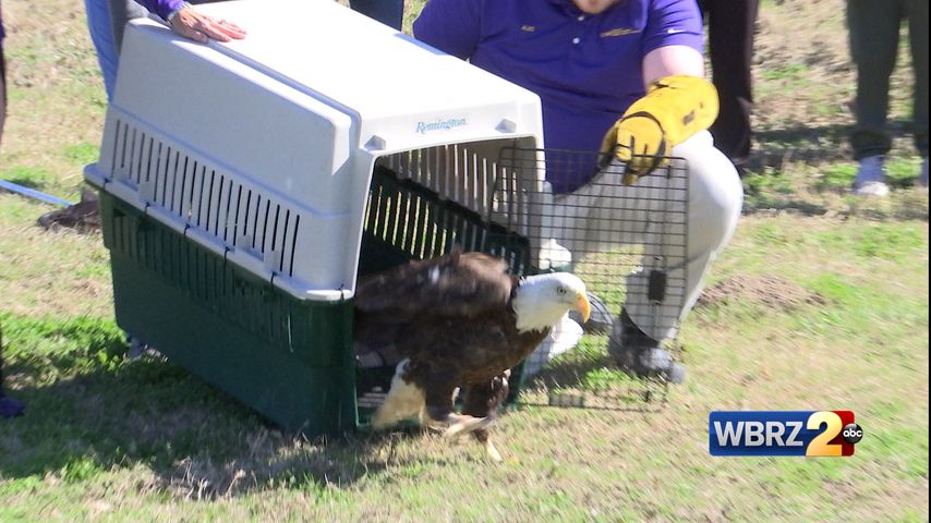 BATON ROUGE - LSU's superstar women's basketball coach, Kim Mulkey, joined the LSU Veterinary School Friday to release a bald eagle that spent nearly two months in the university's care.