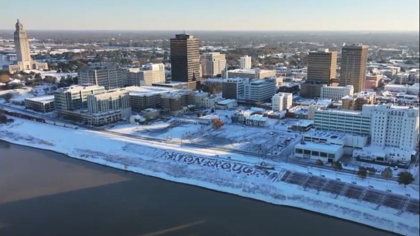 WBRZ's Balin Rogers captures stunning drone footage of Baton Rouge blanketed in snow
